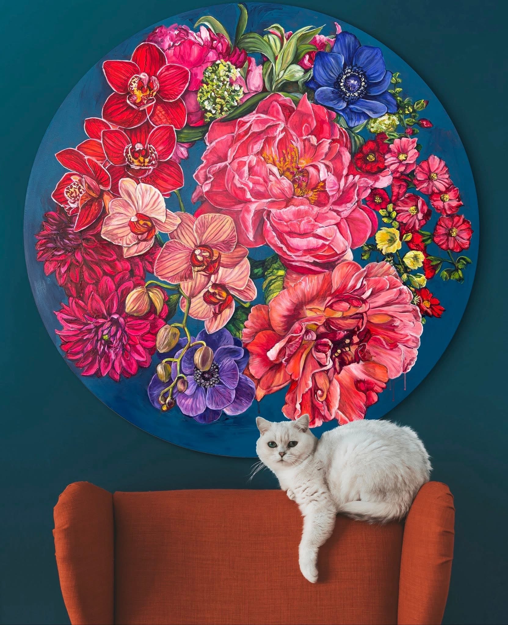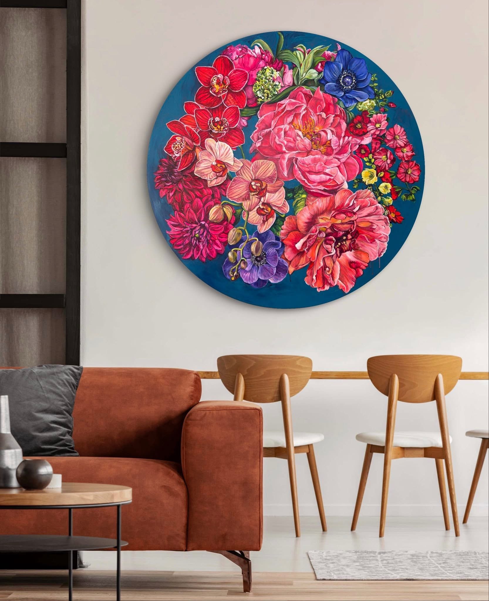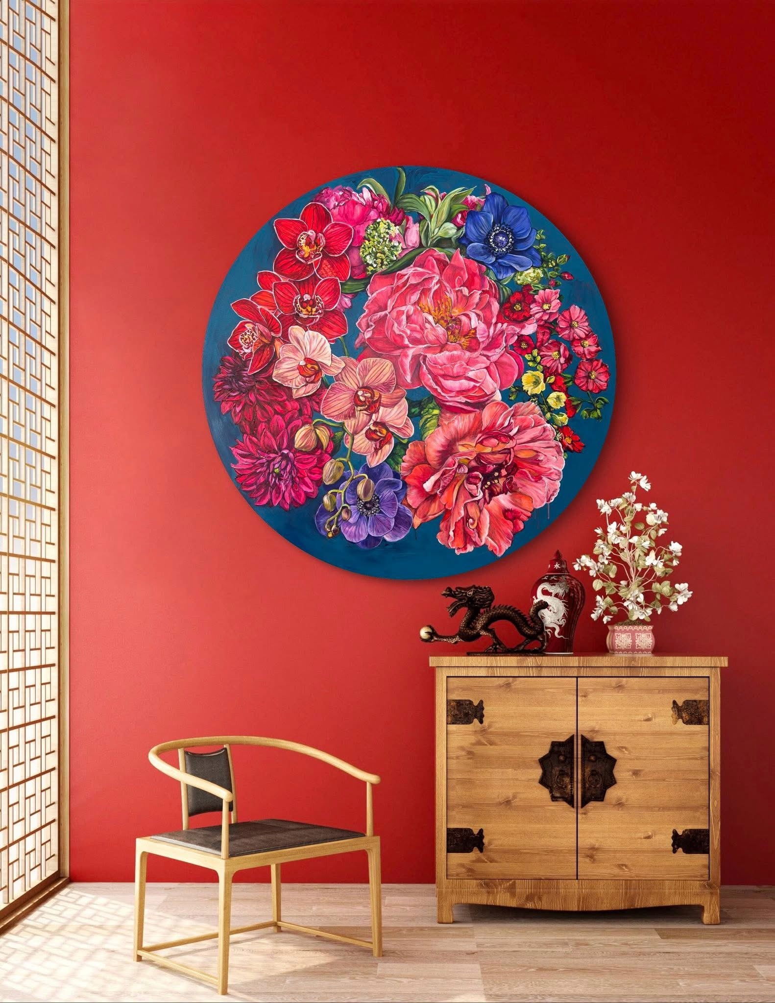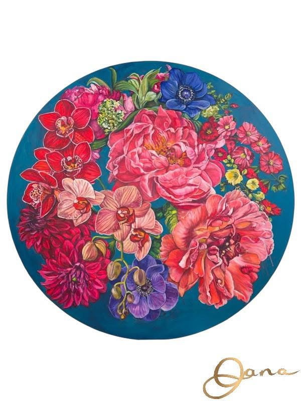 This artwork, alive with full-bloom peonies and open dahlias, is a celebration of the seasons we hold inside ourselves. It honours the quiet strength of waiting—for warmth, for light, for the right time to unfurl. Through long winters of the soul, we often forget that we carry an eternal spring within us. She Carried Spring Within reminds us that even in stillness or shadow, our bloom is not gone—it is simply waiting. Each phase of life holds its own season of becoming, and in every chapter, there is a time to flower again. Joy, beauty, and revival live within us always—we only need to remember..,