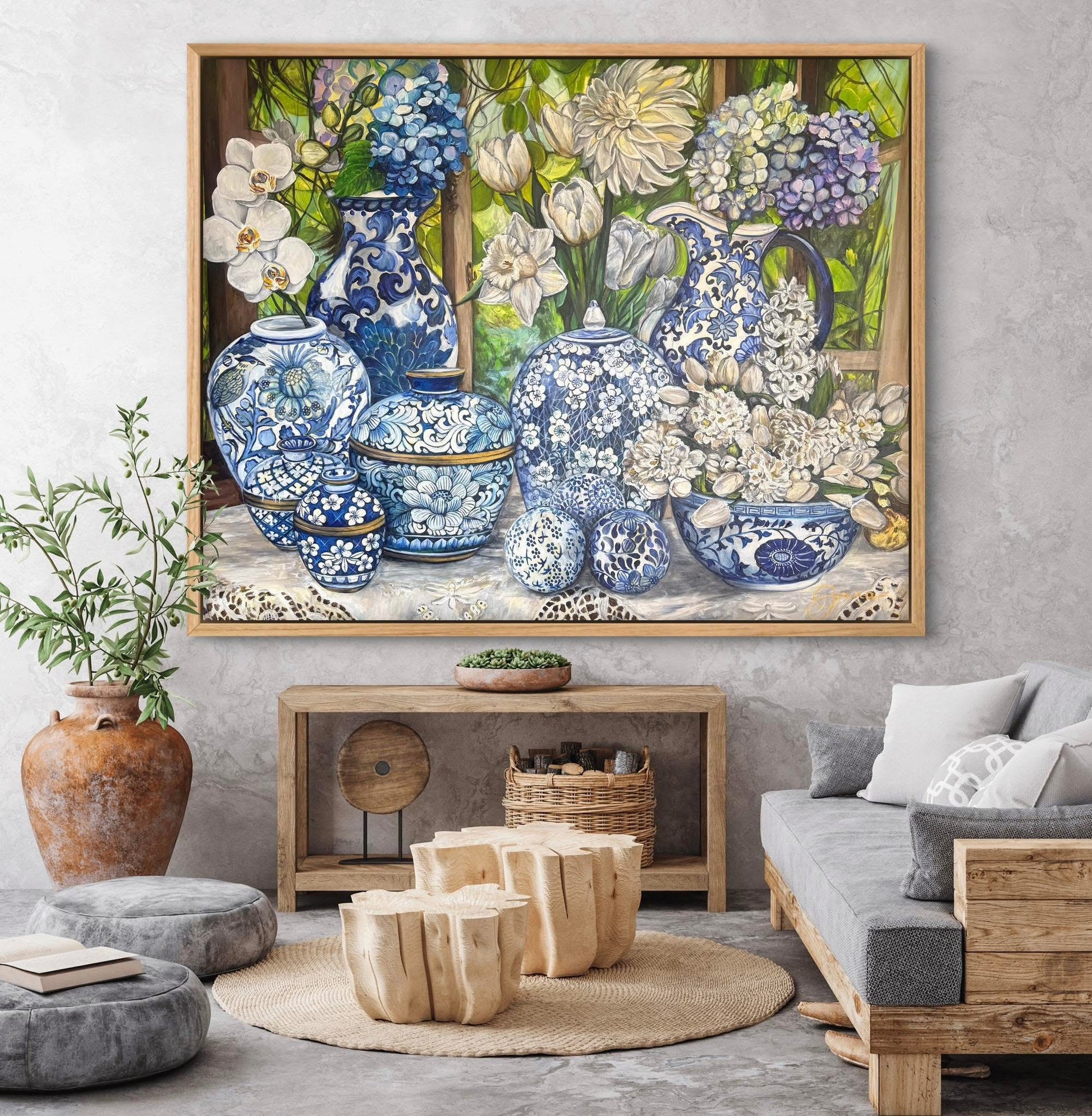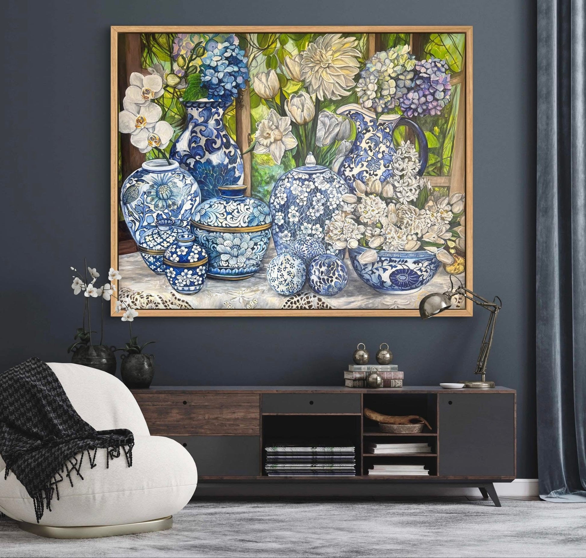 One of 25 limited edition signed canvas prints from Jana Aspeling’s Floral paintings. Stretched over a high-quality box board frame, the artwork imparts a feeling of freshness, joy and revival. The frame is fitted with cleats for easy installation at home.
